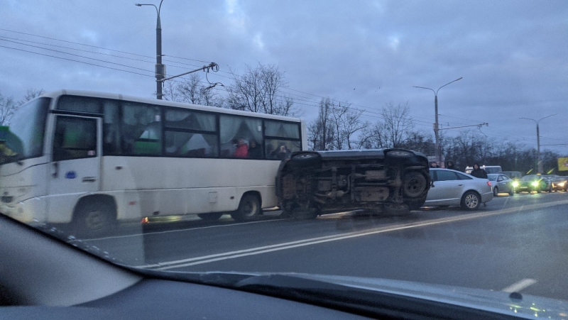 Авария на Пушкинском в Могилеве: перевернутый на бок кроссовер и гигантская пробка. ВИДЕО