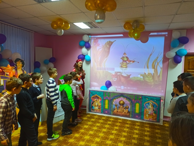 Чего здесь только не было! Завораживающие видеосюжеты, загадочно мерцающее платье Жасмин, удивительная музыка востока, конкурсы «Узнай мультфильм по музыке», «Разные штучки», «Кулинарная интуиция», «Дефиле», «Королевы и богини». Большое впечатление оставила игра Джинн «Акинатор», игра «Волшебная лампа». Было много приключений с любимы-ми героями, но главное - победили грозного Джафара.