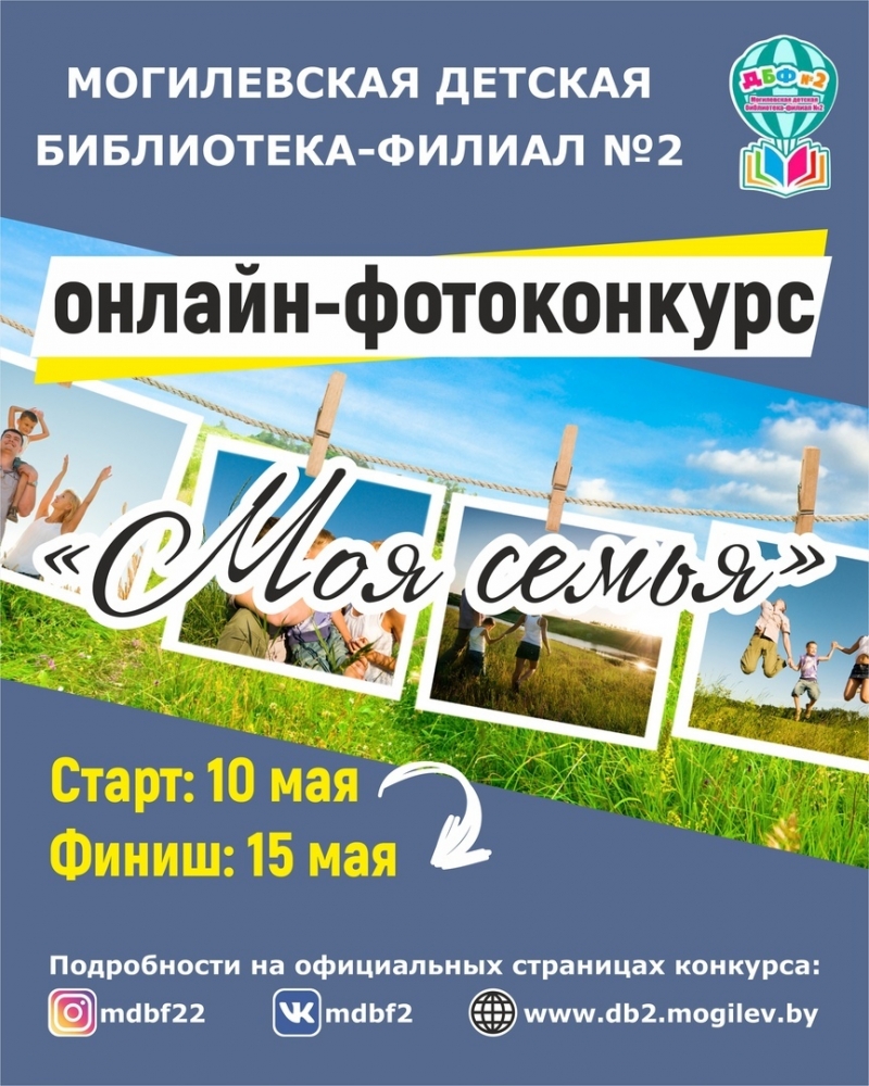 В преддверии празднования Международного Дня семьи детская библиотека-филиала №2 объявляет онлайн-фотоконкурс "Моя семья"!