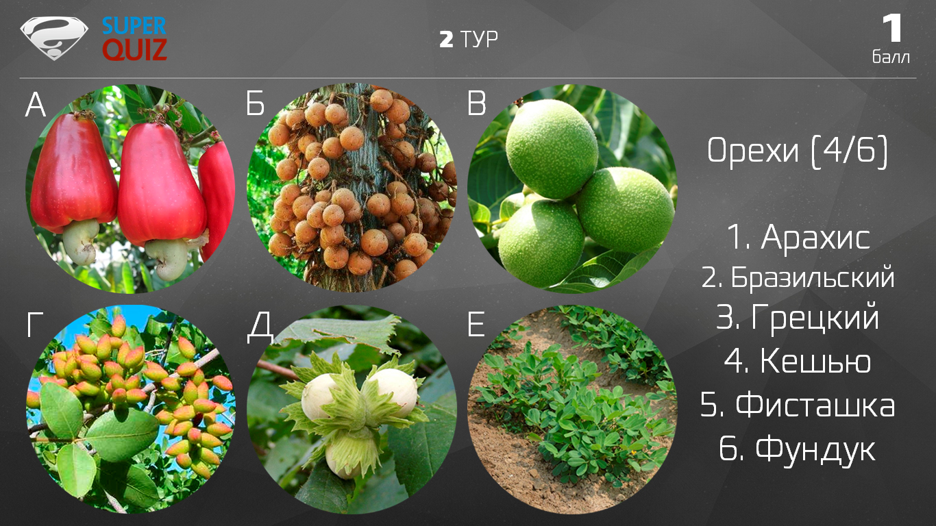 2. Соотнесите название орехов с картинками, где показано, как они растут.