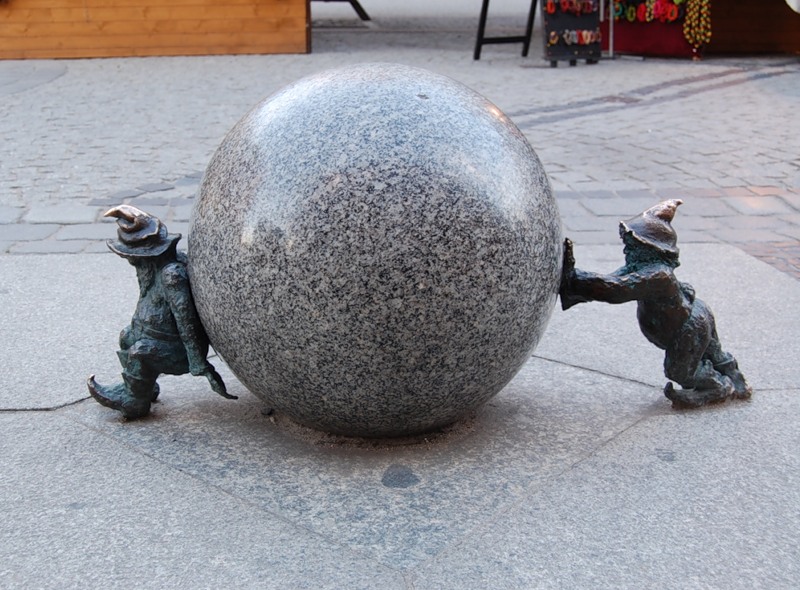 4. Во Вроцлаве установлено очень много памятников гномам. А какое имя упоминается в названии памятника, который вы видите на фото?