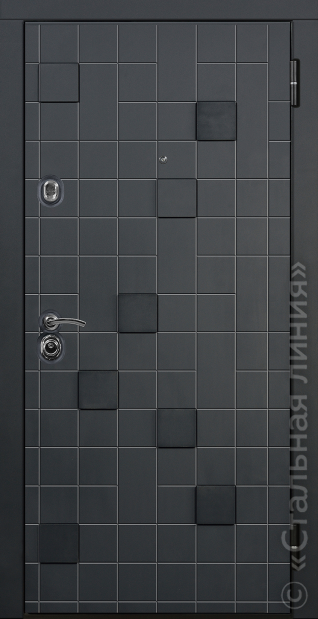 Разноуровневые квадраты придают двери эффект объёма и динамичности. Трендовые цвета идеально подойдут для современного интерьера.