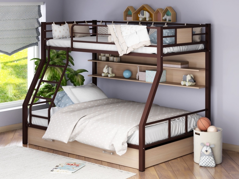В условиях дефицита жилых квадратных метров предпочтение чаще всего отдается кроватям в два яруса. Это оптимальный выбор в соотношении компактности, удобства и стоимости. К тому же некоторые двухъярусные модели выполняют сразу несколько функций: спального места, рабочего пространства, площадки для игр и тайного хранилища.Двухуровневая кровать с двумя расположенными друг над другом местами для сна— это своего рода классика. Идеально подходит для небольшой комнаты, «хозяйничают» в которой два ребенка. Такая кровать не только бережно экономит драгоценные квадратные метры, но и создает иллюзию чего-то особенного. Она напоминает дом на дереве, что очень нравится многим юным непоседам.