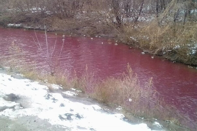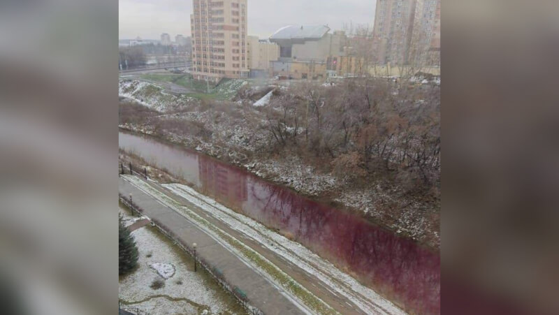Фотографии реки с красной водой ранее появились в социальных сетях, власти города обещали разобраться с ситуацией и установить источник загрязнения.
